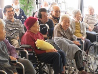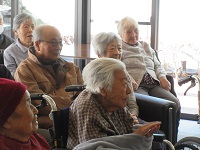 本日は、音楽療法の日でした。今年最後の音楽療法となり、少し遅いクリスマスソングや少し早いお正月の歌唱で楽しまれておりました。