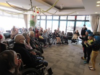 歌を歌ってくれました。何度も練習してくれてとても上手でとても可愛く、入居者様喜んでくださいました。