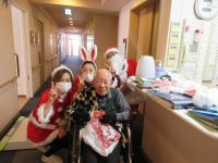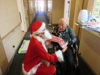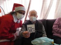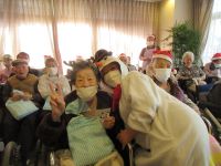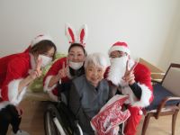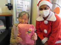 午後からは、シーハーツ川口サンタからご入居者様に贈り物を届けに伺いました。ご入居者様の穏やかな笑顔をご紹介させていただきます。