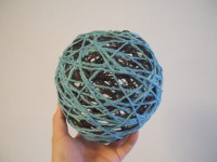1日経って、風船に巻き付けていた麻糸が固まったので