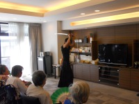 綺麗な扇を持つと一段と笑顔になり、一斉に扇を挙げた