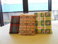 色とりどりの布から好きなのを選んでいただき、裁縫や手芸が