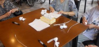 てるてる坊主を沢山作って、先生に見せていたり入居者様も園児にあげたり