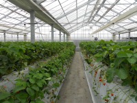 ハウスの中は広く車いすの方でも十分に通れて、イチゴは腰の高さくらいに