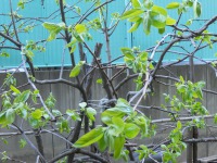 庭にあるさくらんぼと柿の木の新芽が出て、