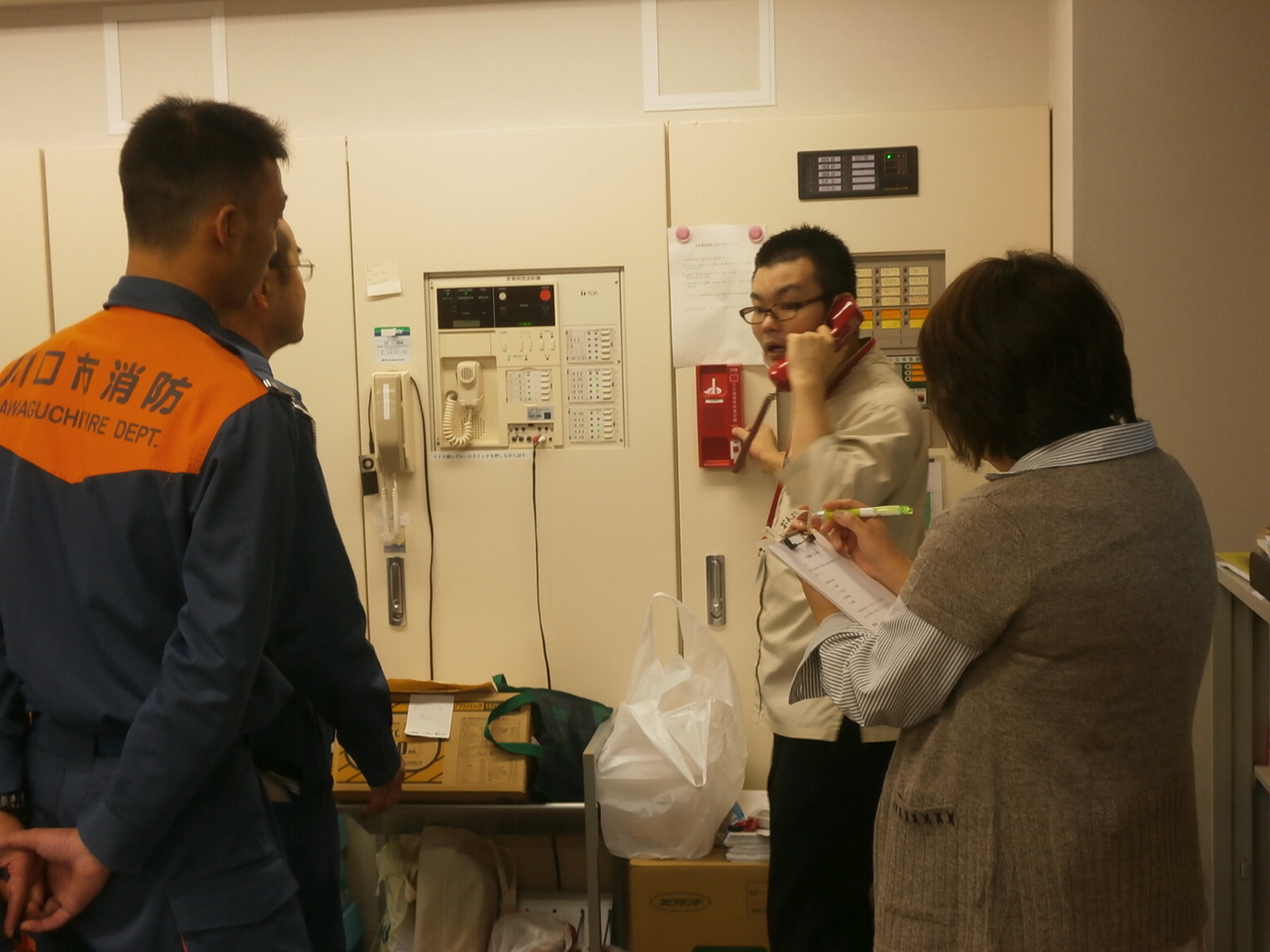 今回はAEDの使用方法と夜間帯の避難方法、経路の確認
