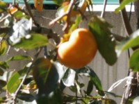 以前にお伝えいたしました庭の柿がオレンジ色に実りました。