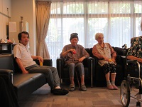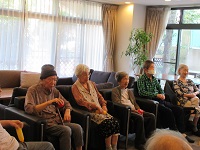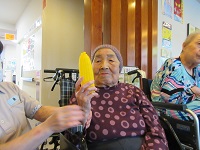 皆さん、音楽に合わせてトウモロコシの楽器をふりふりされていました!夏の歌が多くて、夏の思い出を懐かしそうに話されています。