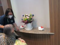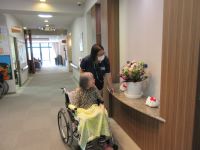 I様が、リハビリを終えられてロビーに飾っているお花を見に来てくれました。