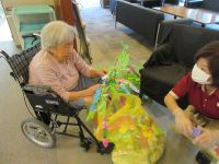 入居者D様が、七夕飾りの片付けを手伝ってくださいました。笹から願い事の短冊と飾り物を丁寧に外してくれました。D様、ありがとうございました。