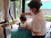本日は、理美容の日でした。蒸し暑い日が続いており、ご入居者様、皆様さっぱりされたと喜ばれておりました。