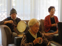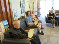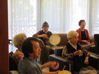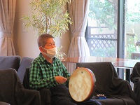 元気に太鼓と鈴を持って演奏してくださいました。男の方の太鼓に元気がなく頑張っていただきました。