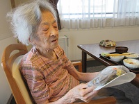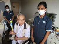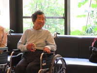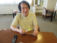 「これ、もらったんだけど、世話できないから頼むよ」と仰っています。お部屋でお水をあげることを提案しますが「みんなに見てほしい」との希望で施設の正面玄関に飾らせていただいています。素敵な笑顔をありがとうございます!