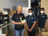 若い実習生からのプレゼントに素敵な笑顔をいただいています。