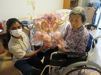 ご家族様よりプレゼントが届いています。施設からのケーキを召し上がっていただきました。おめでとうございます。