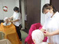 事前にご予約を頂いた入居者様、順番にお好みの髪型にて承っております。