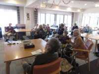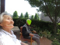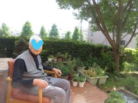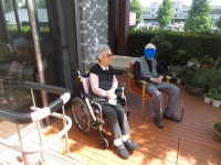 お花🌺をご覧になり、メダカに声をかけたり過ごされてます。