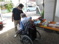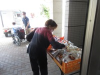 入居者様お天気も良く玄関先でお買い物楽しまれている
