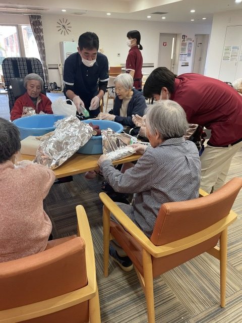 午前中は焼き芋パーティー、