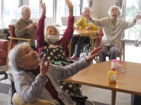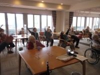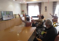 午後のひと時…カラオケ機器に導入されているオリジナルTV体操を行ってみました!気軽に参加出来てリズム♪に合わせながら楽しく体を動かせましたね!