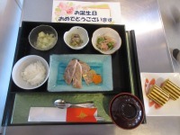 お誕生日おめでとうございます!ささやかですが昼食時にプチケーキを添えて
