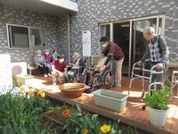 快適な陽気となりました。中庭はツツジも奇麗に花を咲かせて…思わす入居者様もゆったりと座り込んで鑑賞されておりました🌼