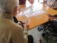 今日の午後レクリェーションは書道、そして別テーブルでは大判のトランプを使ってのトランプ大会を楽しんでいただきました。それぞれゆったりと時間を過ごす日もあっても良いですね!