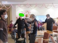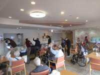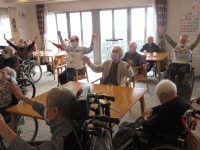 今日も昼食前、皆様にお集まり頂き1階フロアにて体操を行ないました。
