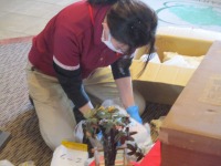 スタッフが丁寧に紙で包みお片付け、お人形傷つけないように。