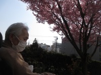 中庭の河津さくら🌸と花壇のお花🌺をご覧になり