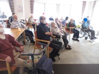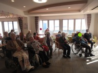今日も明るい陽射しが降り注ぐフロアで体操を行ないました。