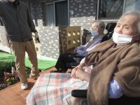 午後のいい天気で風もなかったので、お庭で日向ぼっこしました(*^^*)