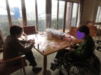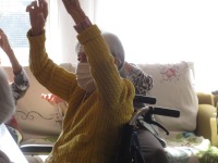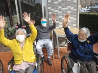 ポカポカ日和で柔らかな日差しの下でリハビリを兼ねた日光浴を