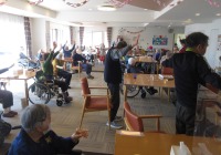 今日も1階フロアで昼食前のラジオ体操&口腔体操を実施しました。