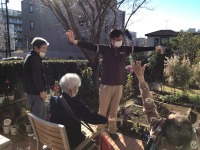 リハビリを兼ねて背伸びを行ったり庭を少し散歩