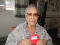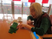 2Fラウンジで入居者様と折り紙を行い