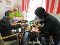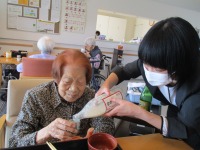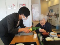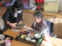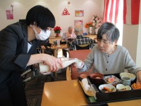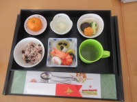 昼食はおせち料理とお赤飯元旦を楽しまれている様子を