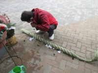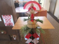 大きく作成して頂き飾り付けました。鳥居も折り紙です。
