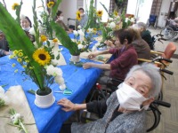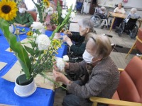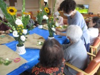 今日の午後レクは講師をお招きしての「フラワーアレンジメント教室」の開催でした。
