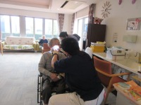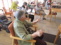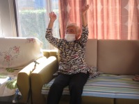 食事前の体操に参加し体をほぐし、口腔ケア体操を
