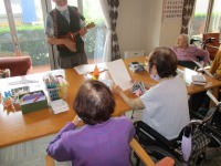 定番の鶴を折りながら講師の方にウクレレ演奏🎸して頂き即席の合唱大会となりました!