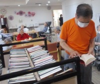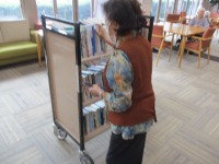 本日は月二回、松戸市図書館の協力を得て施設内で移動図書館を開催しました。