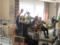 ラジオ体操を行った後はゆっくりとストレッチです。