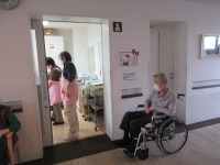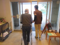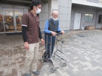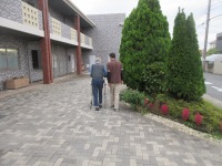サークル歩行器にて施設周りを歩行訓練❣