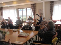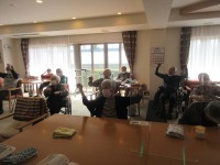 入居者様は陽気にかかわらず元気よく体操参加!