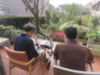 みごとに咲き奇麗です。テラスで飼育されているメダカさん達も
