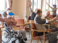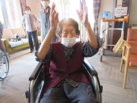 ラジオ体操~口腔体操などスタッフの呼びかけに沿って