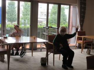 入居者様ラジオ体操参加され