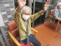入居者様カット後の鏡をご覧になりニコニコ笑顔