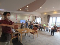 入居者様も体操参加され頑張っております。